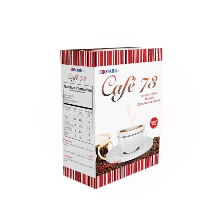 قهوة 73 من شركة ادمارك الماليزية هي مشروب قهوة فوري يجمع بين طعم القهوة المميز وفوائد فطر الريشي المعروف.